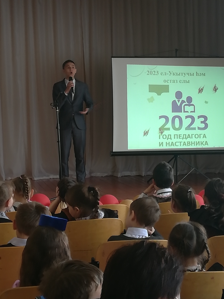 Опубликовано: 27.04.202326 апреля в нашей школе прошел ежегодный театрализованный праздник поэзии “Шигъри дөнья – үзе апрель» , посвященный 137-летию со дня рождения великого татарского поэта Г. Тукая. В празднике участвовали учащиеся 1-8 классов. В программе праздника прозвучали стихи поэта, были показаны театрализованные постановки. Украшением праздника стали песни на стихи Г. Тукая и народные танцы. Праздник завершился исполнением песни “Туган тел”.