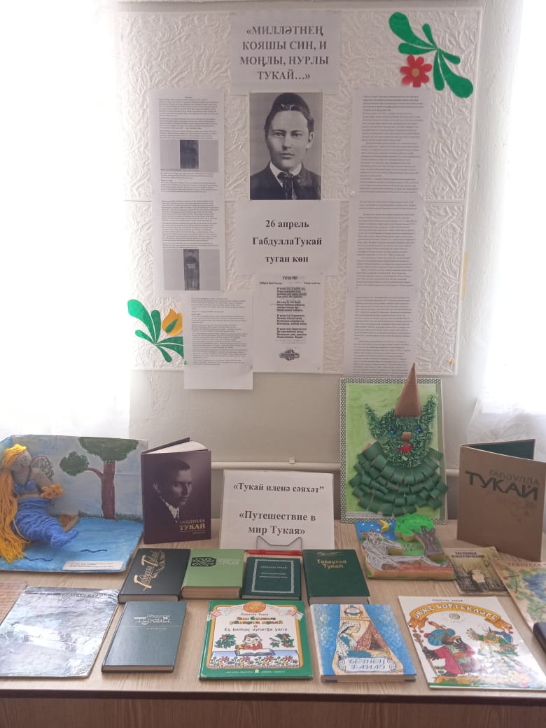 К этой дате в школьной библиотеке оформлена книжная выставка «Путешествие в мир Тукая», на которой представлены произведения поэта и литература о его жизни.