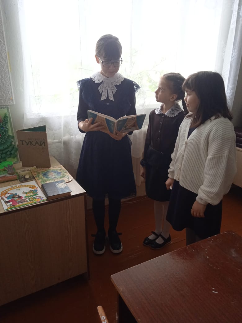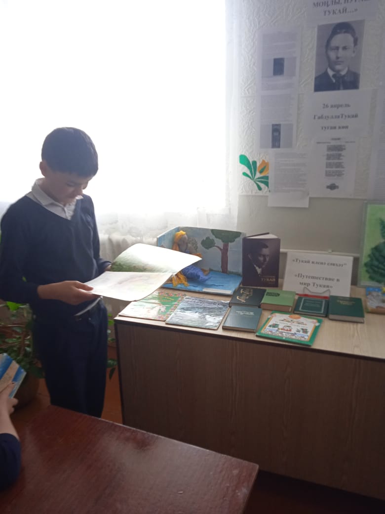 Опубликовано: 26.04.2024Татар халкы үзенең бөек шагыйре Габдулла Тукайны онытмый. Быел яраткан язучыбызның тууына 138 ел. Шул уңайдан мәктәбебездә “Тукай көннәре” уздырыла. Укучыларда Г. Тукайның иҗатына кызыксыну тәрбияләү максатыннан, “Тукайны укыйбыз” акциясе оештырылды.Тәнәфес вакытында укучылар мәктәп китапханәсендә Г.Тукай әсәрләрен кычкырып, сәнгатьле итеп укыдылар, фикер алыштылар.