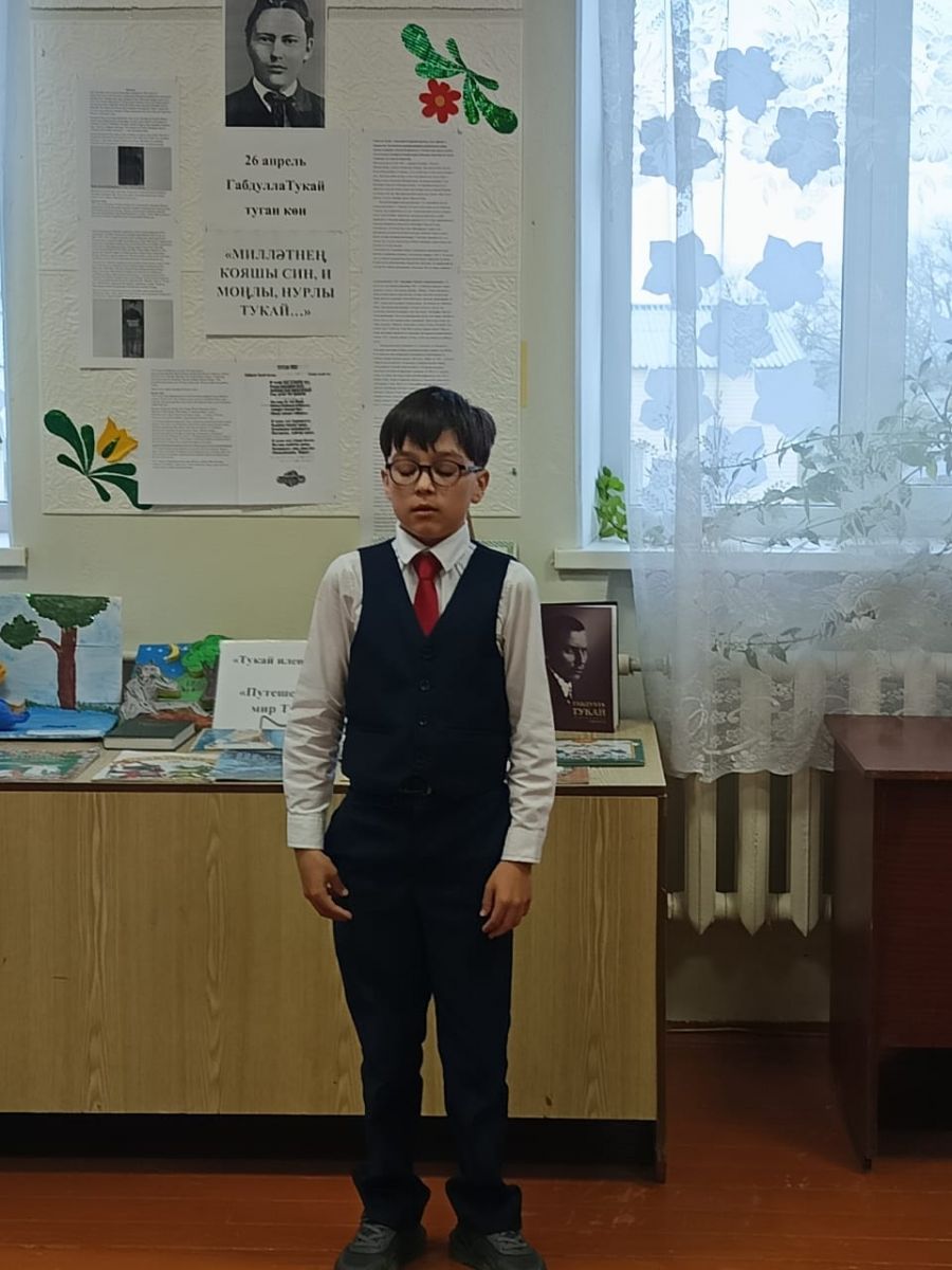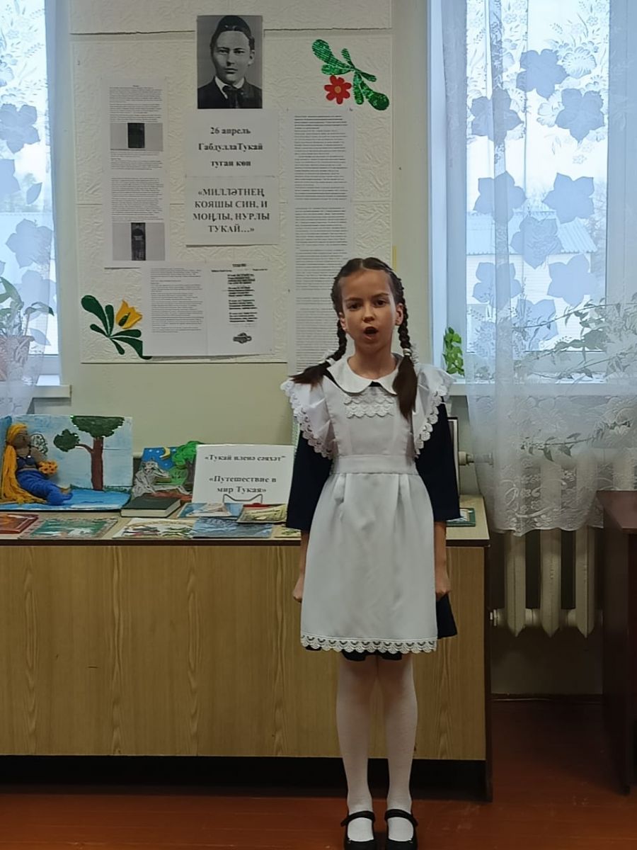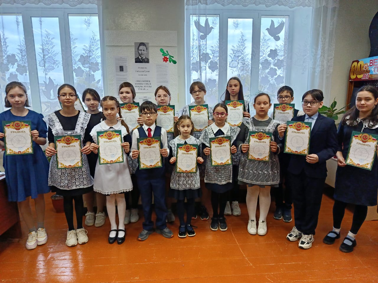 Опубликовано: 25.04.2025Сегодня в нашей школе прошел школьный конкурс чтецов «Шигъри дөнья — үзе апрель», посвященный творчеству великого татарского поэта Г. Тукая. На конкурсе учащиеся 2-8 классов выразительно рассказали стихи Г. Тукая разных лет на татарском, русском и английском языках и были награждены грамотами.