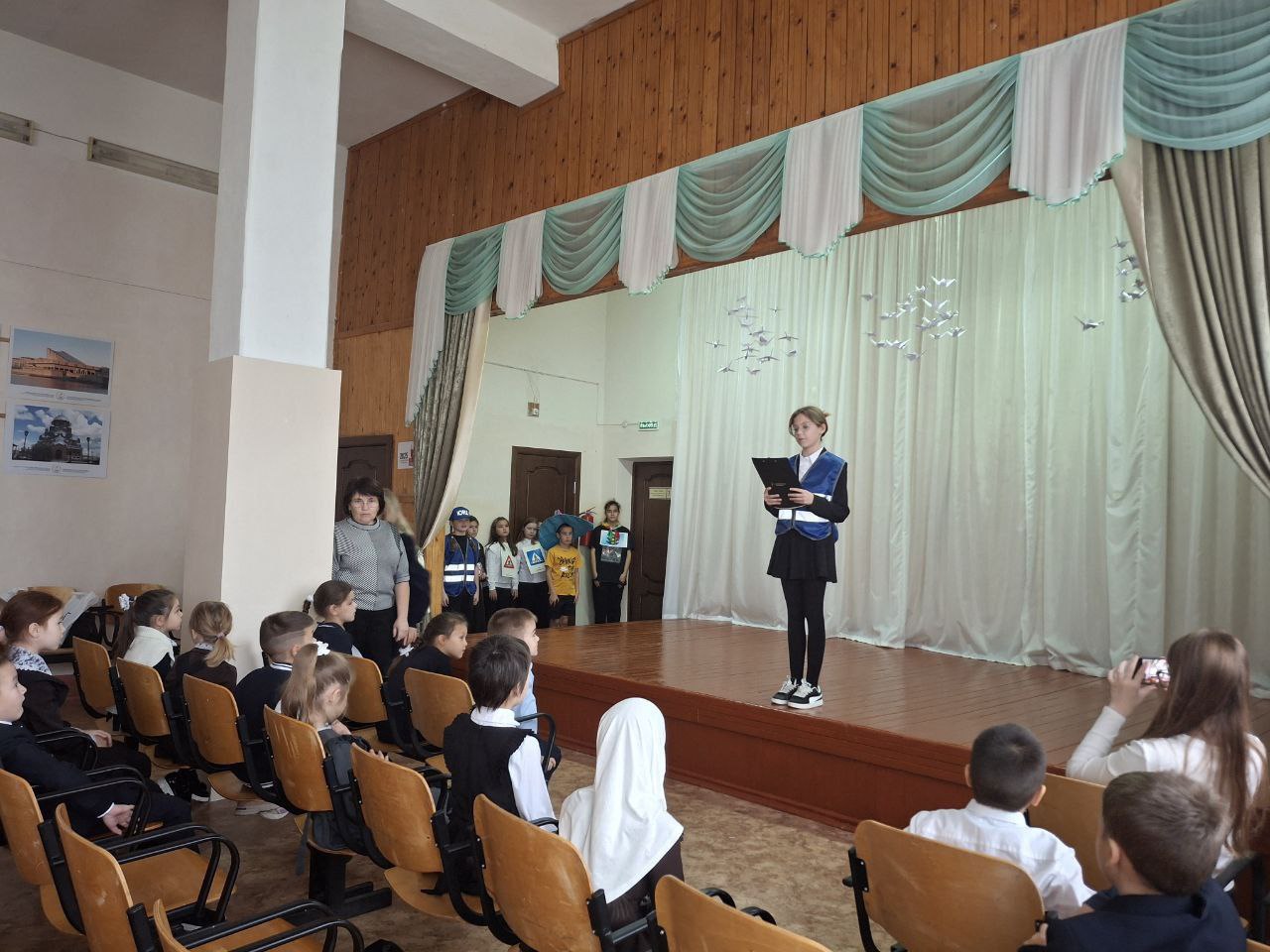 Опубликовано: 16.10.202516 октября состоялось Посвящение первоклассников в пешеходы. Члены отряда ЮИД совместно с руководителем Галимовой Е. А., подготовили и провели мероприятие, где вручили первоклассникам удостоверения пешеходов. А инспекторы ГИБДД подарили ребятам светоотражающие элементы.