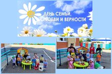 День семьи, любви и верности» — это добрый и светлый праздник, ведь именно семья является самой важной ценностью, которая связана с человеческой жизнью. В России этот праздник отмечают отмечают 8 июля. И в нашем детском саду в этот день педагоги провели ряд мероприятий, приобщающих дошкольников к культурным ценностям и традициям семьи: чтение художественной литературы, тематические беседы, рассматривание иллюстраций, рисование, поставили сказку "Непослушный медвежонок". На прогулке праздник продолжился рисованием на асфальте. Символом Дня являтся ромашка- самый известный и самый распространенный в России цветок. Его и рисовали дети всех групп.