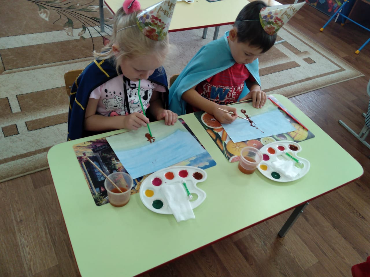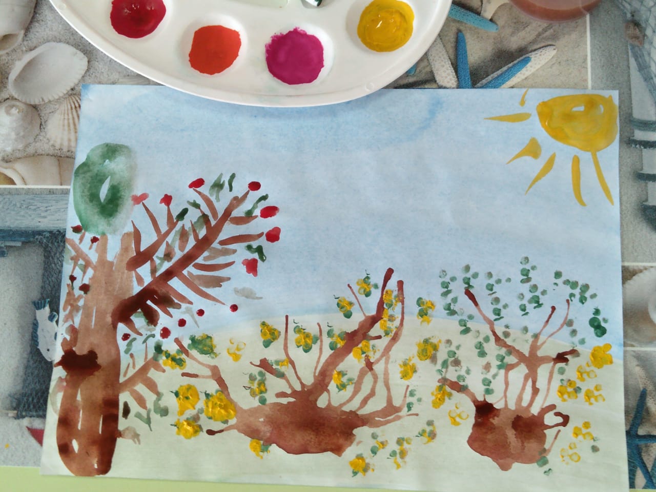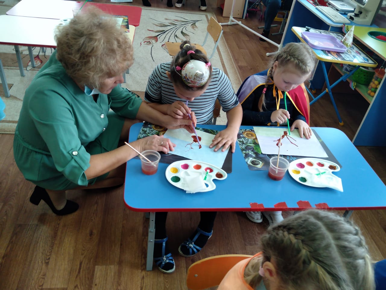 В соответствии с планом работы МБДОУ воспитатель подготовительной группы Каргина Г.П. провела открытое занятие по художественно-эстетическому развитию на тему:" Осенний лес,полон сказок и чудес". Педагог познакомила детей с новой техникой рисования кляксографией. Дети очень заинтересовались этой техникой и увлеченно выполняли свои работы. У них получились очень интресные рисунки на осеннюю тематику . Работа нетрадиционной техникой подняла интерес детей к рисованию ,и принесла радость от выполняемой работы.
