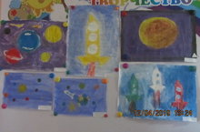 В нашем детском саду прошел тематический день, посвященный Дню Космонавтики – это знакомство детей с космосом в форме игры, чтения худ. произведений, просмотра презентации, беседы, где воспитанники с большим интересом познакомились с первыми покорителями космоса, космическим снаряжением, планетами Солнечной системы. Знания дети закрепили в своих творческих работах. Рисунки и поделки выполнены с большой фантазией и представили яркий мир красок звёзд, ночного неба нашей галактики. В холле детского сада оформлена выставка коллективных и индивидуальных работ детей.