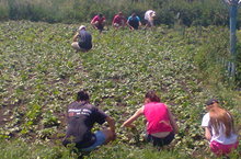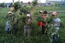 Мәктәп яны тәҗрибә участогында хезмәт лагерына йөрүче балалар һәр көнне түтәлләрне чүптән арындырып, су сибеп торалар. -