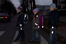 Для безопасности детей на дорогах нужно обеспечить детей светоотражающими элементами.Присутствие светоотражающих элементов на детской одежде может значительно снизить детский травматизм на дорогах.Такой элемент позволит лучше заметить ребенка, если на улице темно. Очень хорошо, если светоотражающие элементы уже присутствуют на одежде, но если их нет, такие элементы можно приобрести и пришить самостоятельно. Их цветовая гамма и дизайн очень разнообразен, что не испортит внешний вид одежды. Большой популярностью стали пользоваться фликеры — специальные детали для детей и подростков. Фликеры представляют собой наклейки или значки, они легко крепятся к детской одежде. Веселые картинки наверняка понравятся вашему ребенку. Как вариант можно приобрести светоотражающую тесьму. Такая тесьма пришивается в необходимых местах и также не портит общий вид одежды, а даже дополняет её. Приобретите детям светоотражатели. Даже летом фликеры могут понадобиться детям, там, где вечером на проезжей части нет освещения. -
