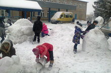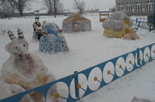 Бүген карның матур итеп явуына шатланып, укучылар дәресләрдән соң бик тырышып кар сыннары ясау эшен дәвам иттеләр.