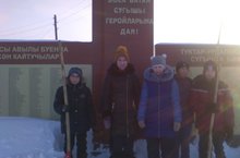 Сегодня с учащимися 6 классов была организована очистка от снега территории обелиска села Туктарово-Урдала.