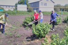 Мәктәп яны тәҗрибә участогында хезмәт лагерына йөрүче балалар бик тырышып эшлиләр. Алар яшелчәләрне, чәчәклекләрне чүп үләннәреннән арындыралар, су сибәләр.