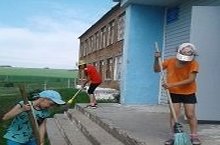 Тринадцатый день пришкольного лагеря был назван Днём добрых дел. А начался, как обычно, с утренней зарядки. После вкусного завтрака была проведена операция «БУНТ» - большая уборка на территории лагеря.