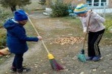Бакчада көзге эшләр гөрли. Укучылар мәктәп яны бакчасында тырышып эшиләр: чүп җыештыралар, яшелчәәрне алалар, түтәлләрне казыйлар.