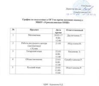 План на весенние каникулы МБОУ «Урмышлинская ООШ»