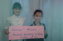 "Әниемә бүләгем - ул бүген алган бишлем" акциясендә әниләренә иң зур бүләк ясаучылар: 2нче сыйныфтан Минибаева Диляра (5- "5"ле), 6нчы сыйныфтан Хисамова Нәргизә (6 "5"ле).