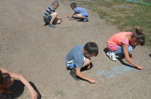Лагерьга йөрүчеләр бүген шундый исем астында асфальтка рәсем ясау бәйгесе үткәрделәр.