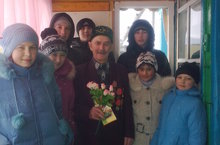 22 февраль көнне мәктәпнең бертөркем укучылары авылыбыз ветераннары Якупов Гата һәм Могыйнов Салих абыйларны котларга бардылар.