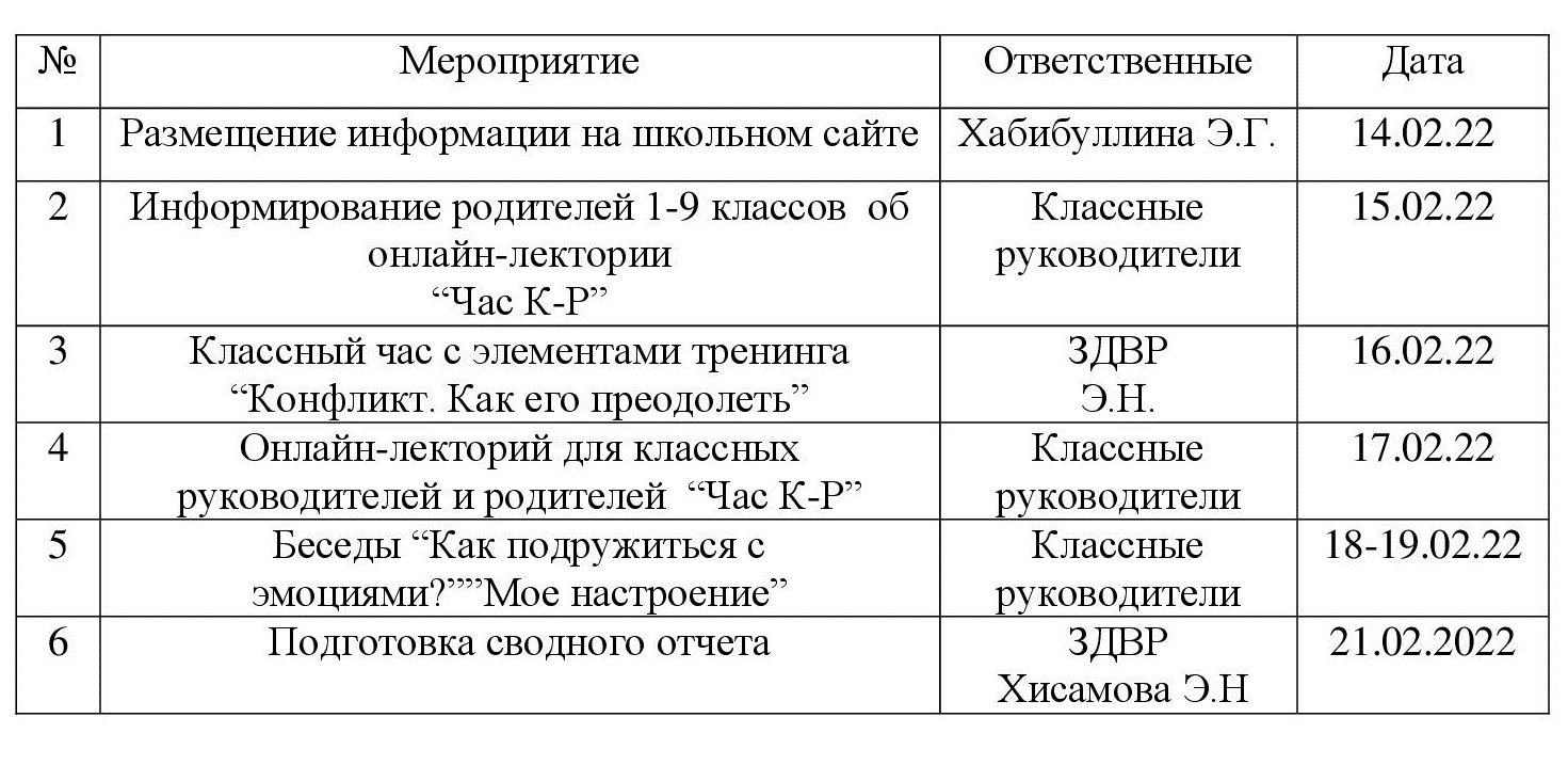 План школьных мероприятий Республиканской недели психологии «Шаги к психологическому благополучию»