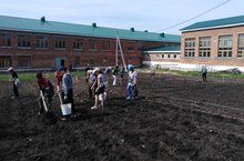 Яз җитү белән мәктәп яны участогында эш кайный башлый. Бүген барлык мәктәп хезмәткәрләре һәм укучылары мәктәп бакчасында җирне эшкәртеп, түтәлләр ясап, яшелчәләр, чәчәкләр утырттылар.