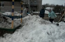 Сотрудники проводили раскидывание снега на территории детского сада. 14.04.2018