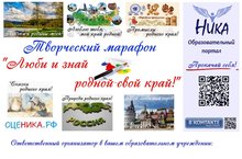 С целью патриотического воспитания молодежи образовательный портал "НИКА", приглашает учащихся и вопитанников образовательных организаций, педагогови родителей с 01.11.2018 по 31.12.2018 г. принять участие во Всероссийском творческом марафоне "Люби и знай родной свой край!" Информация ЗДЕСЬ