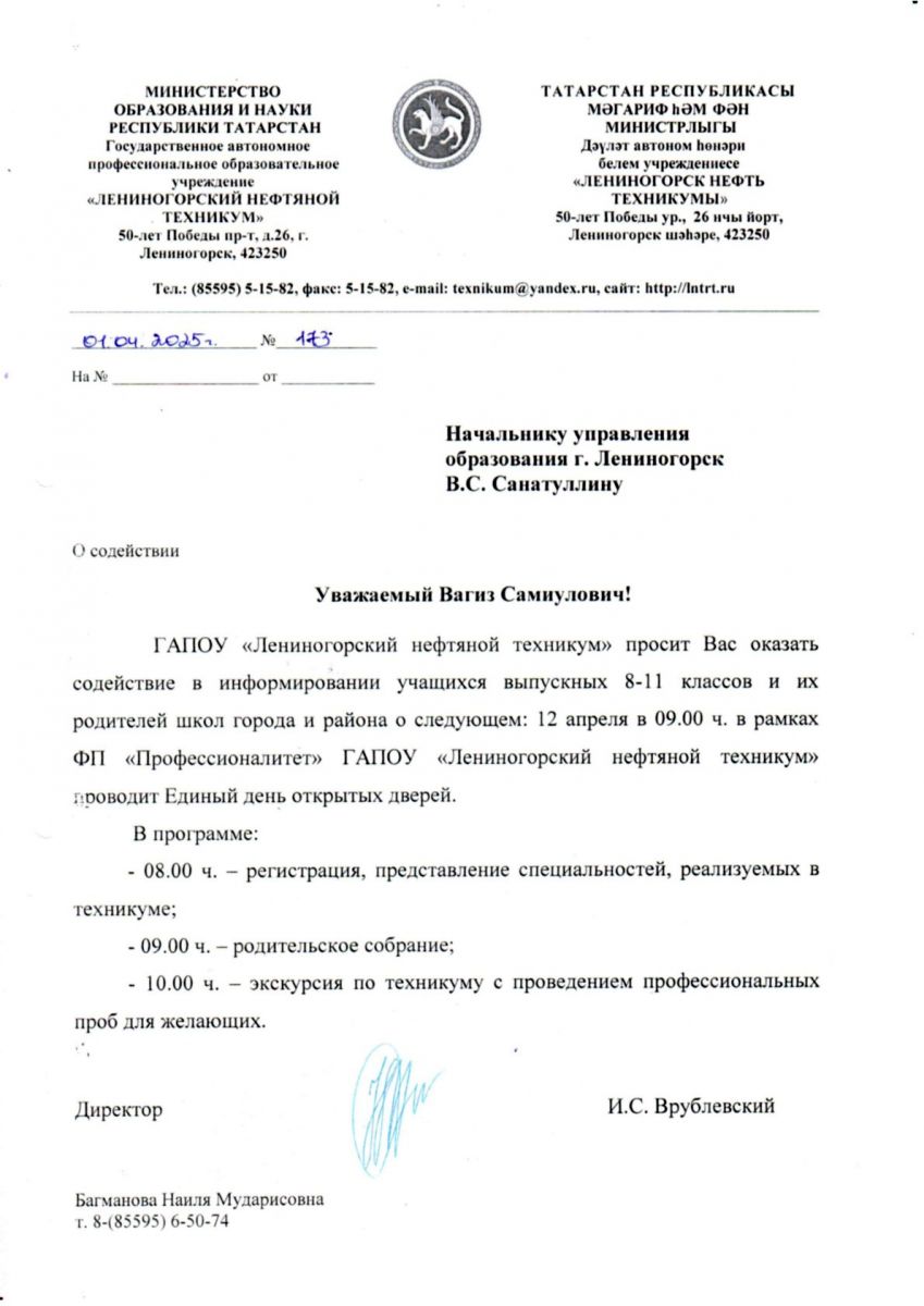- В 9ч.00м. онлайн общение директора техникума Багманова Ильдара Раисовича с родителями, в ходе которого Вы узнаете о нашем техникуме и сможете задать интересующие Вас вопросы. Ссылка на онлайн-трансляцию https://vk.com/wall-221925072_210