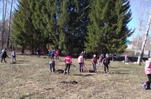 Учащиеся школы участвуют на экологическом субботнике. Учителя и учащиеся вышли на школьны двор наводить порядок. Денек выдался ясным, солнечным, что способствует хорошему настроению.
