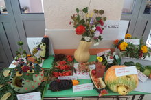 В рамках Дня Урожая в школе прошла выставка поделок "Чудеса осени" из природного материала и овощей.