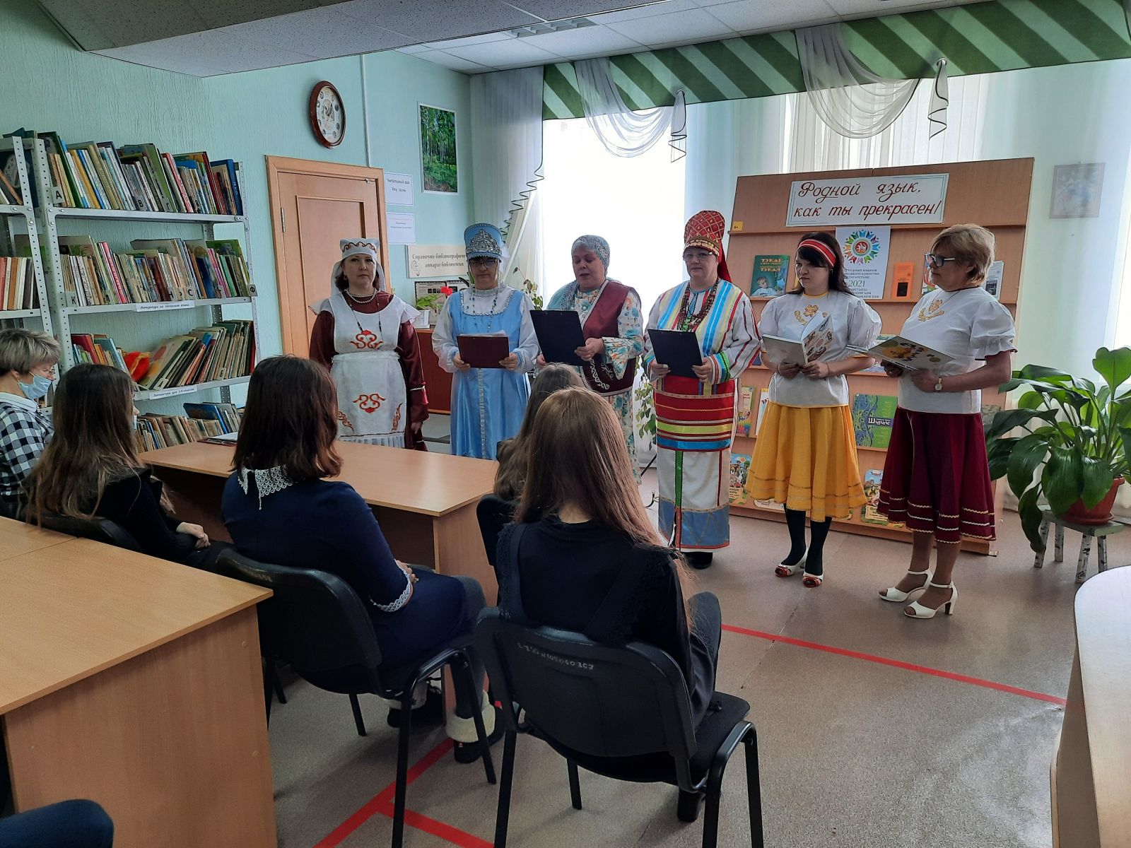 В нашем Зеленорощенском поселении проживают люди больше 10национальностей. Это татары, русские, мордва, чуваши, кряшены, башкиры, удмурты, узбеки, армяне, марийцы, лезгины и другие. Поэтому в нашем мероприятие участвовали и читатели других национальностей. Хайрова В.А. – на татарском, Потапова О.В. - на мордовском языке, Минязева Л. – на удмуртском, Саушкина Е. – на чувашском прочитали красивые стихи о родном языке. Мухаметзянова О.И. поприветствовала гостей на литовском языке. Для каждой из них – это их родной язык.