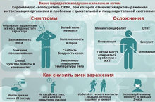 Симптомы заболевания новой коронавирусной инфекции (COVID-19) сходны с симптомами обычного (сезонного) гриппа: высокая температура тела, головная боль, слабость, кашель, затрудненное дыхание, боли в мышцах, тошнота, рвота, диарея.