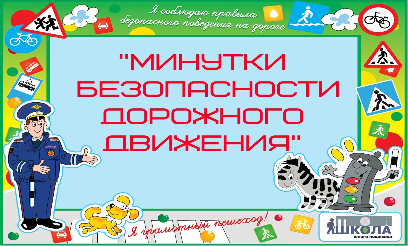 «Минутки безопасности»- это одна из эффективных форм предупреждения происшествий с обучающимися на дорогах. Цель «Минуток безопасности» – повлиять на процесс стихийного формирования навыков поведения на улице во время движения по ней путем создания у детей соответствующей установки, ориентировки мышления на вопросы «дороги» и «безопасности».