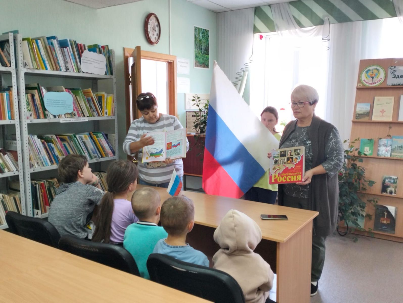 Опубликовано: 22.08.2024В Зеленорощинской сельской библиотеке прошло мероприятие «В символах России – история страны». Цель: формировать представление детей о символике Российской Федерации– Государственном флаге России.