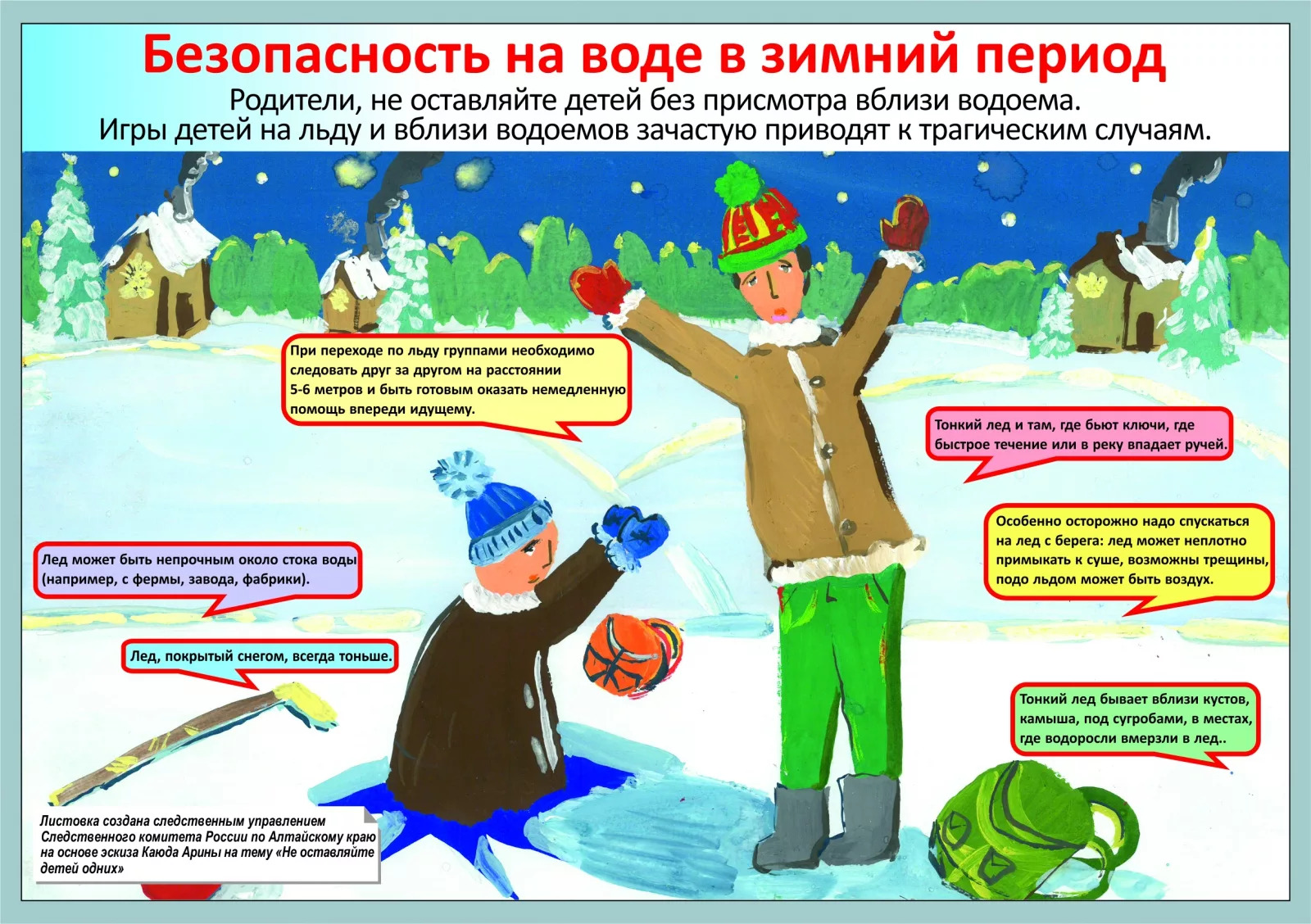 Опубликовано: 01.11.2024Во исполнение письма Комиссии по чрезвычайным ситуациям и обеспечению пожарной безопасности муниципального образования «Лениногорский муниципальный район» Республики Татарстан от 14.10.2024г. № 24-24р «О мерах по обеспечению безопасности населения Лениногорского муниципального района на водных объектах в зимний период 2024-2025 годов», в целях обеспечения безопасности людей на водных объектах в осенне-зимний период, в МБОУ «Зеленорощинская сош им. М. Горького» проходит месячник безопасности на водных объектах с 1 ноября по 30 ноября 2024г. В ходе месячника пройдут профилактические беседы, классные часы с просмотром видеороликов о правилах поведения вблизи водных объектов и запрете выхода на тонкий лед в период осенние-зимний период, инструктажи «Техника безопасности на водоемах в летний, осенне-зимний и весенний периоды».