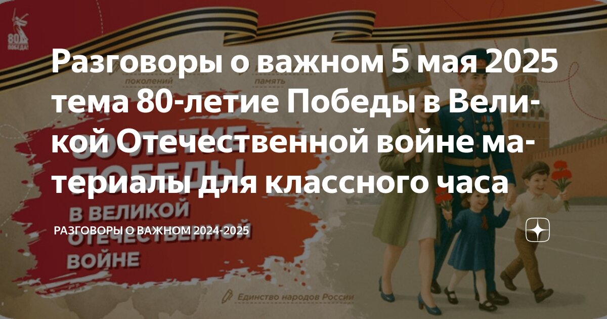 Опубликовано: 05.05.20255 мая 2025 года в 9 классе в рамках курса «Разговор о важном» прошло внеурочное занятие на тему: «80 -летие Победы Великой Отечественной войне».