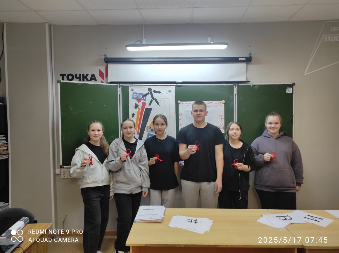 Опубликовано: 17.05.202518 мая День памяти умерших от СПИДа.17 мая учащиеся 8 класса, участники республиканского антинаркотистического проектам"SaМоSтоятельные дети"внесли свою лепту в международную акцию борьбу с недугом, именуемым чумой XXI века.С раннего утра в школе был установлен информационный стенд, оформленный нашими учениками. Также волонтеры за время проведения акции раздали листовки, содержащие информацию о путях заражения ВИЧ, методах защиты и лечения, а также процедуре теста на ВИЧ-инфекцию. Каждый, кто проходил по площади рядом с администрацией села получил красную ленту - международный символ солидарности с инфицированными людьми.Цель Акции заключается в привлечении внимания жителей страны к проблеме распространения ВИЧ-инфекции на территории Российской Федерации.