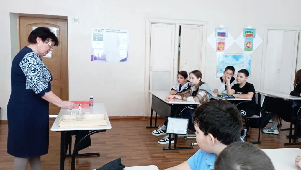 Во второй день недели химии в школе для учащихся 5-6 классов организовали экскурсию в кабинет химии и просмотр занимательных опытов.