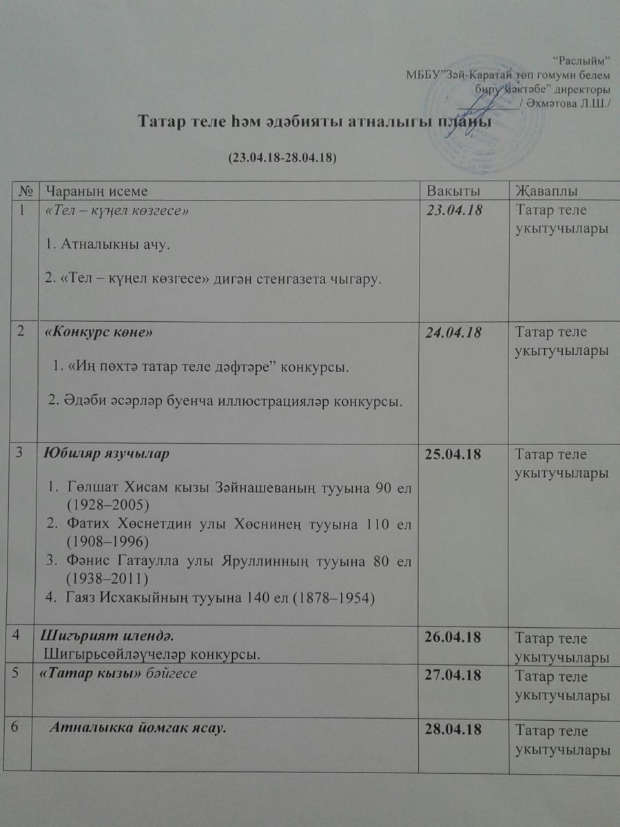 Предметная неделя по татарскому языку и литературе/Татар теле атналыгы 23.04.2018