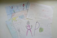 Самые младшие, из нашего отряда, рисовали рисунки посвященные ко дню русского языка.