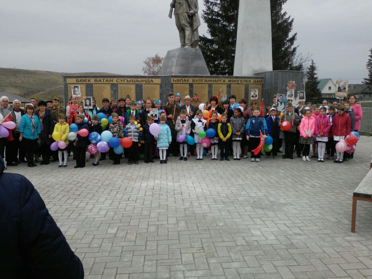 Укучылар һәм укытучылар коллективы Бөек Җиңү бәйрәменә багышланган чарага колоннага тезелеп, патриотик җырлар җырлап бардылар. Ә бәйрәмгә әзерлек эшләре күптән башланган иде: гирлянда –венок ясалган, шигырьләр ятланган... пилоткалар әзерләп куелган.