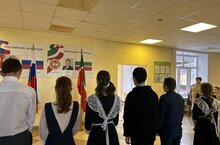 Утро понедельника в школе традиционно началось с торжественной линейки, церемонии вноса флага и исполнения гимнов Российской Федерации и Республики Татарстана