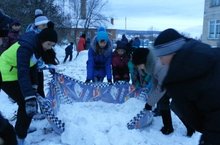 После школы учащиеся и классные руководители 1-9 классов собрались перед входом школы, чтобы посторить снежный городок. Все ребята потрудились на славу. Каждый из учащихся стремился внести свой вклад в строительство городка. Начальные классные создавали маленькие снежные фигурый зверей, а старшие классы всю свою силу и фантазию направили на основные фигуры.