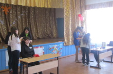 Сегодня для учащихся 5-9 классов было проведено мероприятие , посвященное 8 марта. На празднике участвовали две команды девочек "Маркеры" и "Флешки". Участники викторины отвечали на вопросы ведущего, резали лапшу, как будущие хозяюшки по дому, показывали моду будущего, также пели и танцевали. Наши болельщики показывали свои номера для поддержки команд.Праздник прошел очень весело!