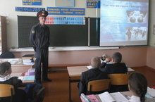 Начальник спец.приемника для содержания административно-арестованных лиц,капитан полиции Сидоров Федор Сергеевич рассказал ребятам о последствиях терроризма,также проинструктировал учащихся,как вести себя во время экстренных ситуаций.