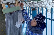 Укучылар белән динамик ял вакытында саф һавада уйнап, кошларга җимнәр салып кердек