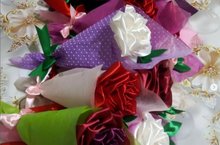 На занятиях кружка "Оста куллар" ребята изготовили для своих учителей оригинальные подарки - розы из атласные лент.