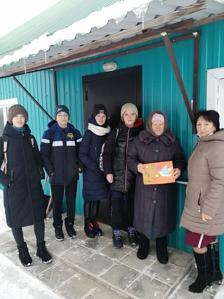 8-9 сыйныф укучылары сыйныф җитәкчесе Харрасова Л. А. белән, Әфганистан җирендә үзләренең хәрби бурычларын үтәгэн солдатларның әти - әниләре янына барып, үз куллары белән ясаган открыткалар бүләк иттеләр.15 февраля день вывода войск из Афганистана и памяти войнов интернационалистов. Сегодня учащиеся 8-9 классов с классным руководителем Харрасовой Л. А. вручили поздравительные открытки для их родителей.