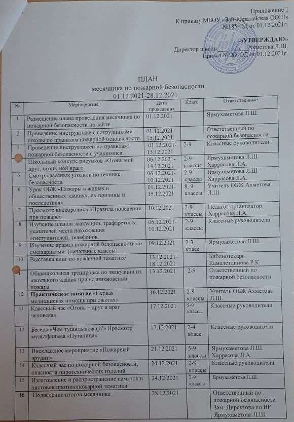 С 1 по 28 декабря 2021 года в школе проходит месячник по пожарной безопасности