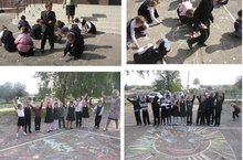 Сегодня ребята из отряда SаМоSтоятельные дети провели конкурс рисунков на асфальте, флеш - моб, день улыбок.