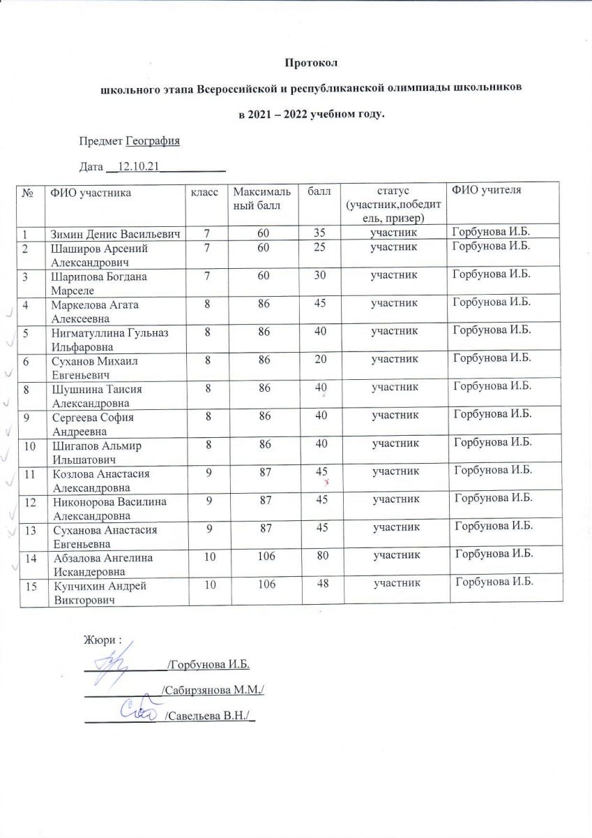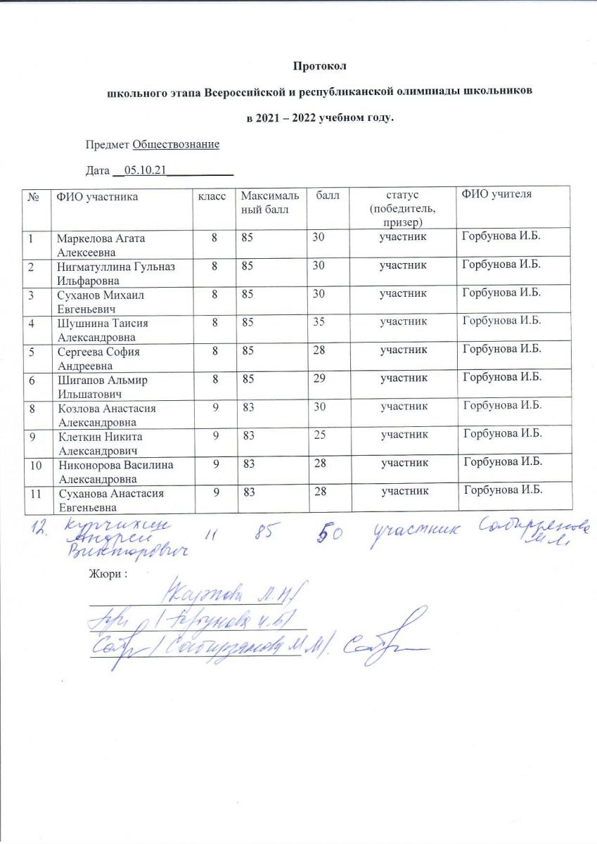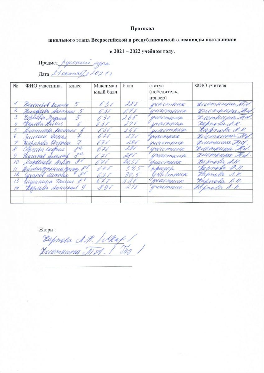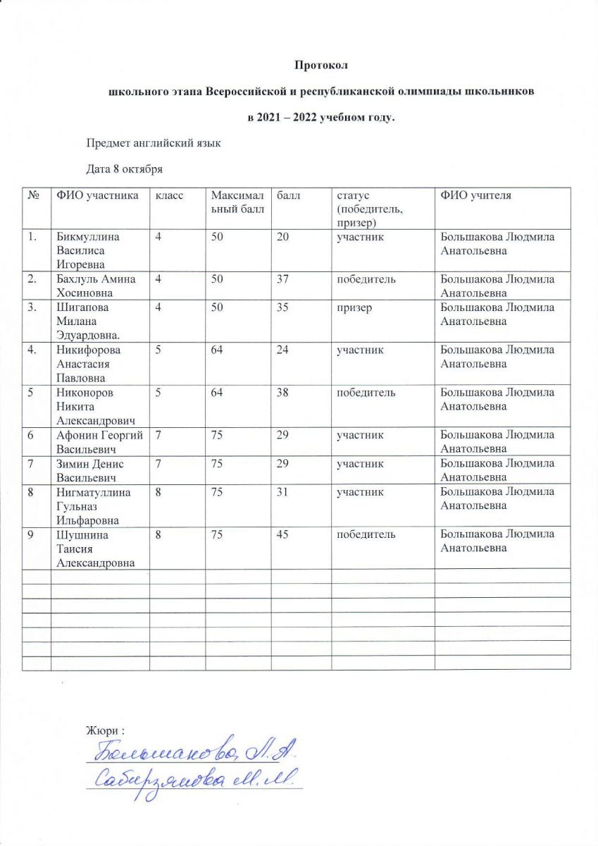 ШКОЛЬНЫЙ ЭТАП ВСЕРОССИЙСКОЙ ОЛИМПИАДЫ ШКОЛЬНИКОВ 2021 - 2022