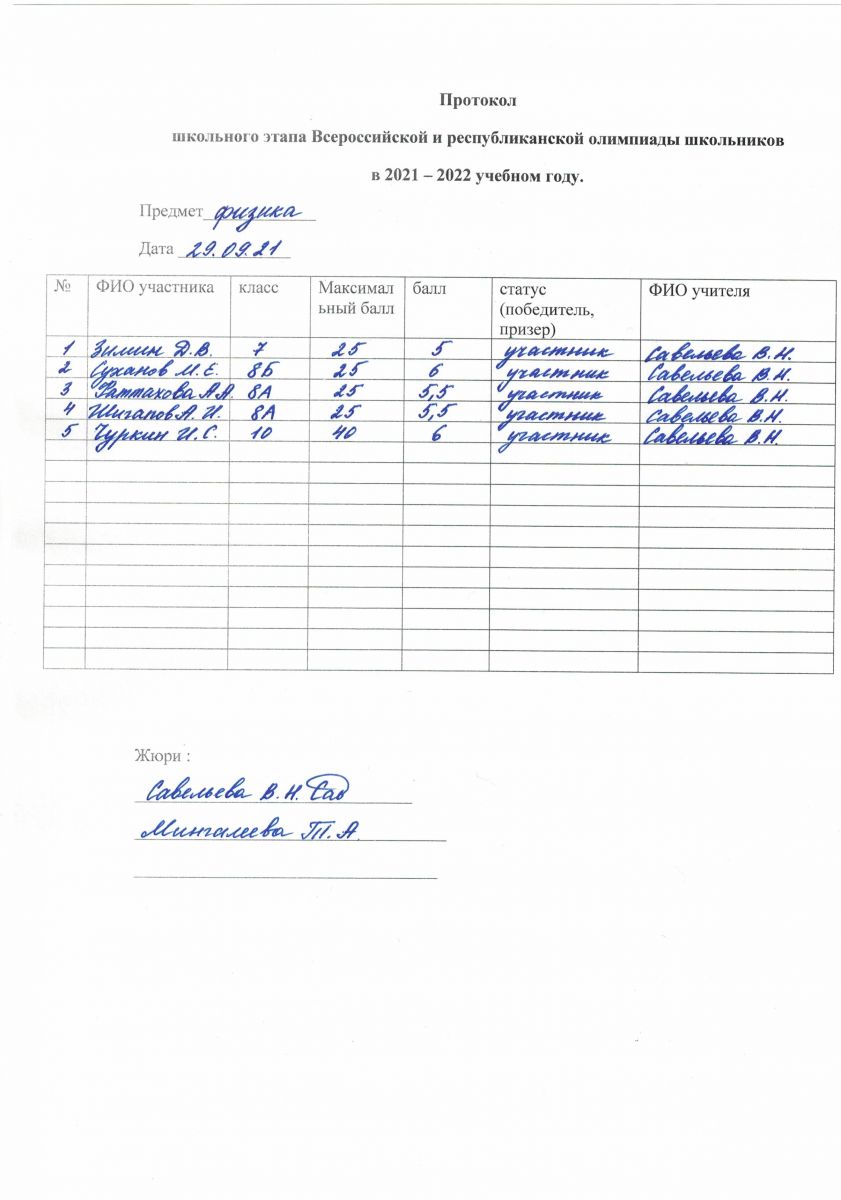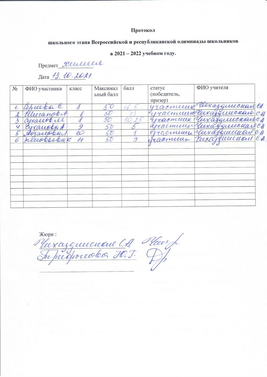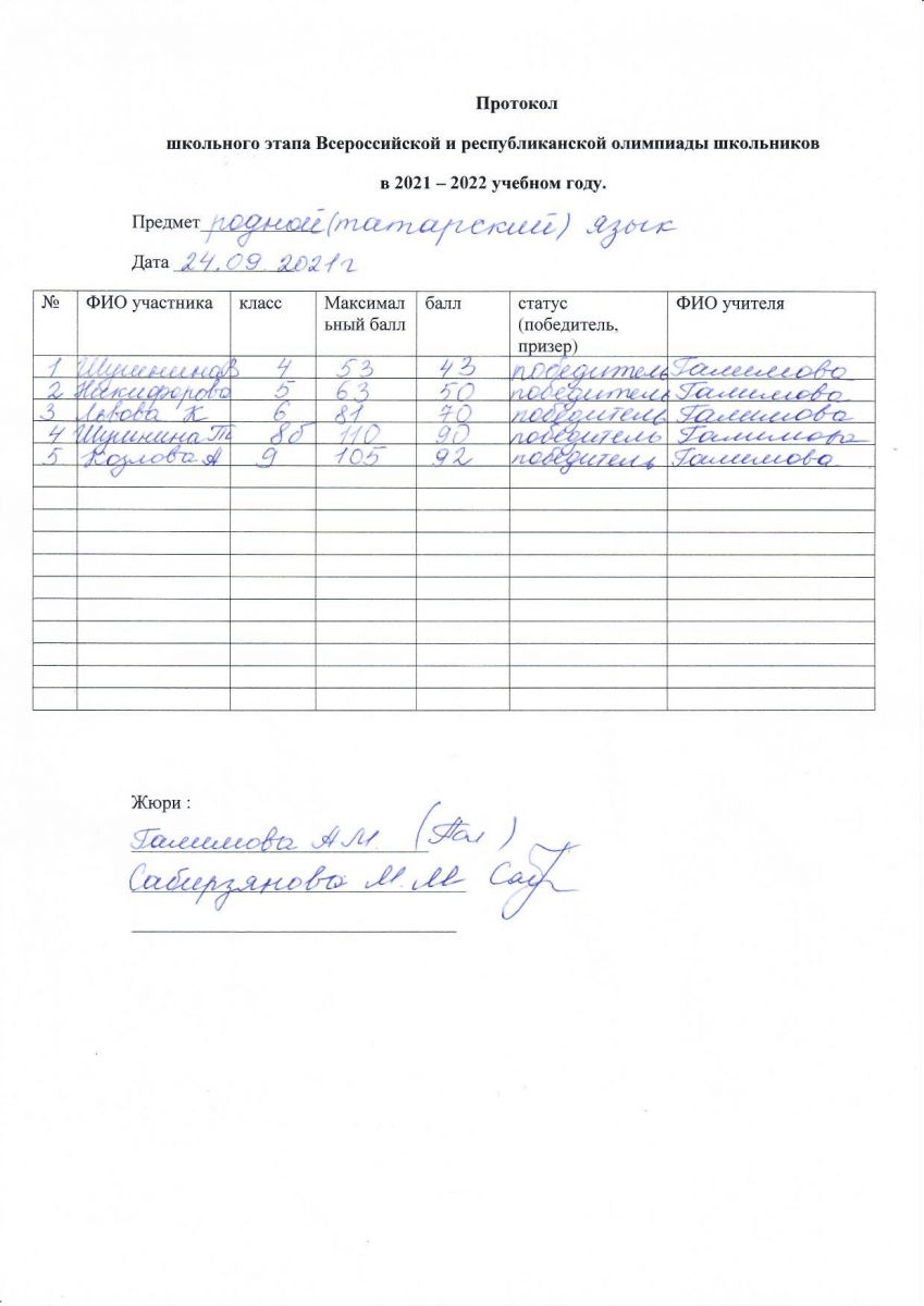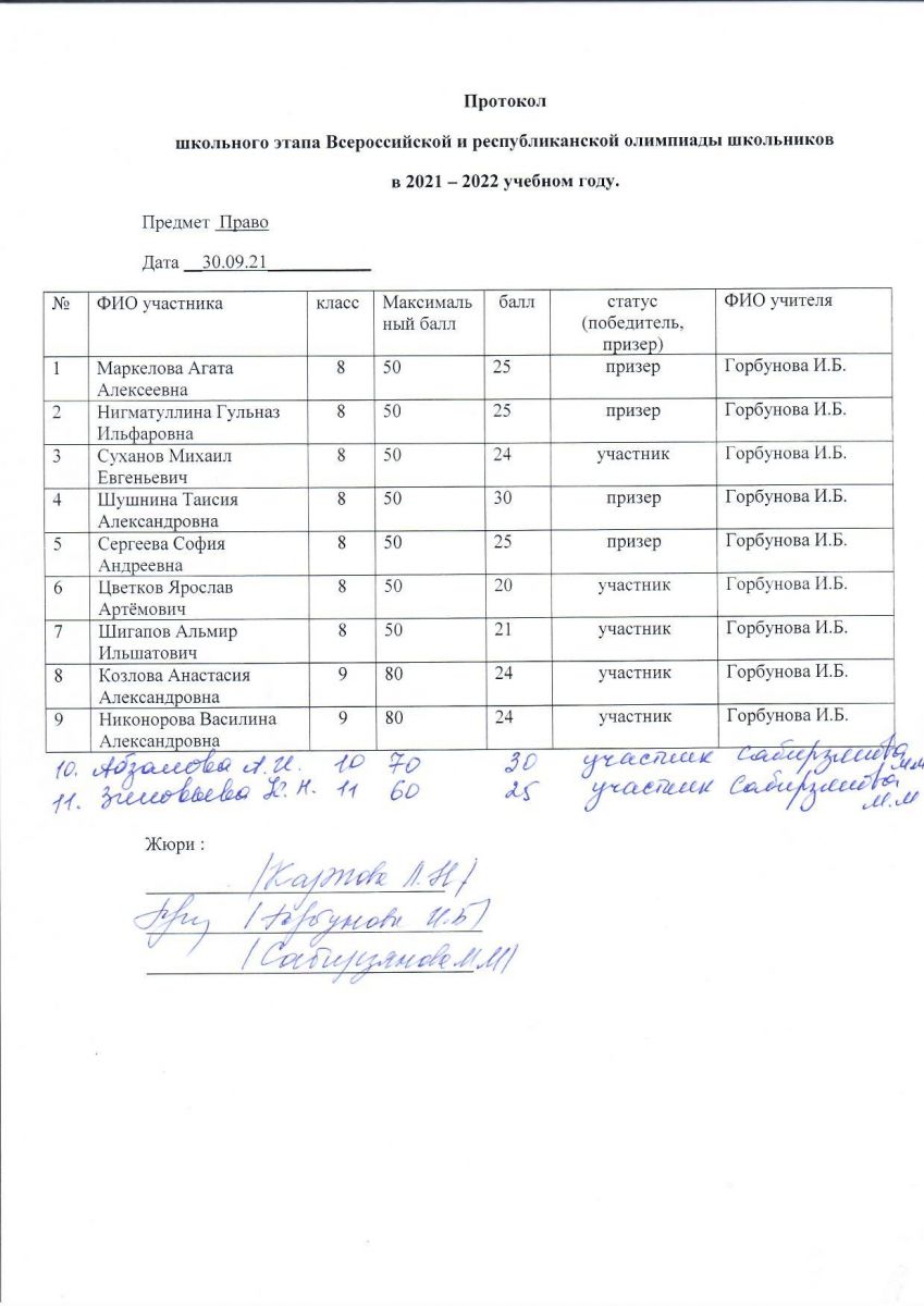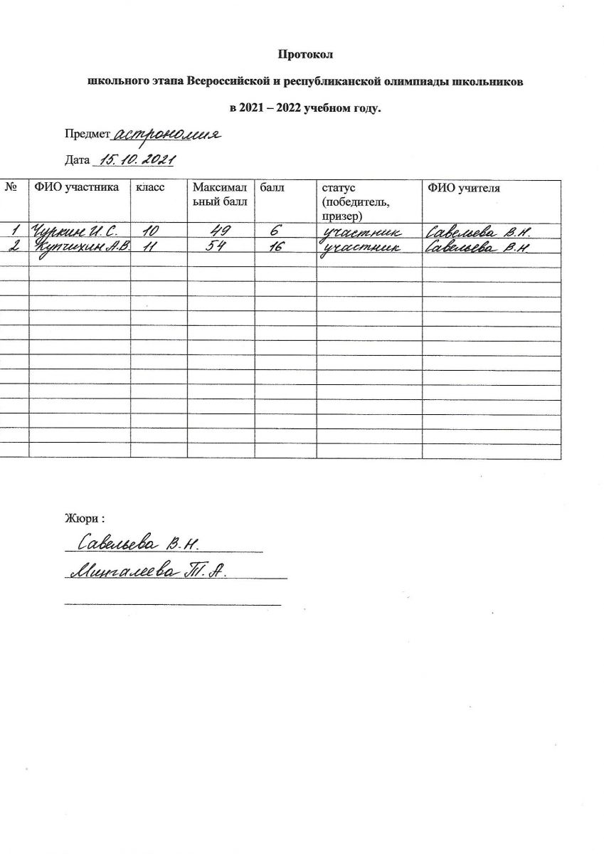 ШКОЛЬНЫЙ ЭТАП ВСЕРОССИЙСКОЙ ОЛИМПИАДЫ ШКОЛЬНИКОВ 2021 - 2022