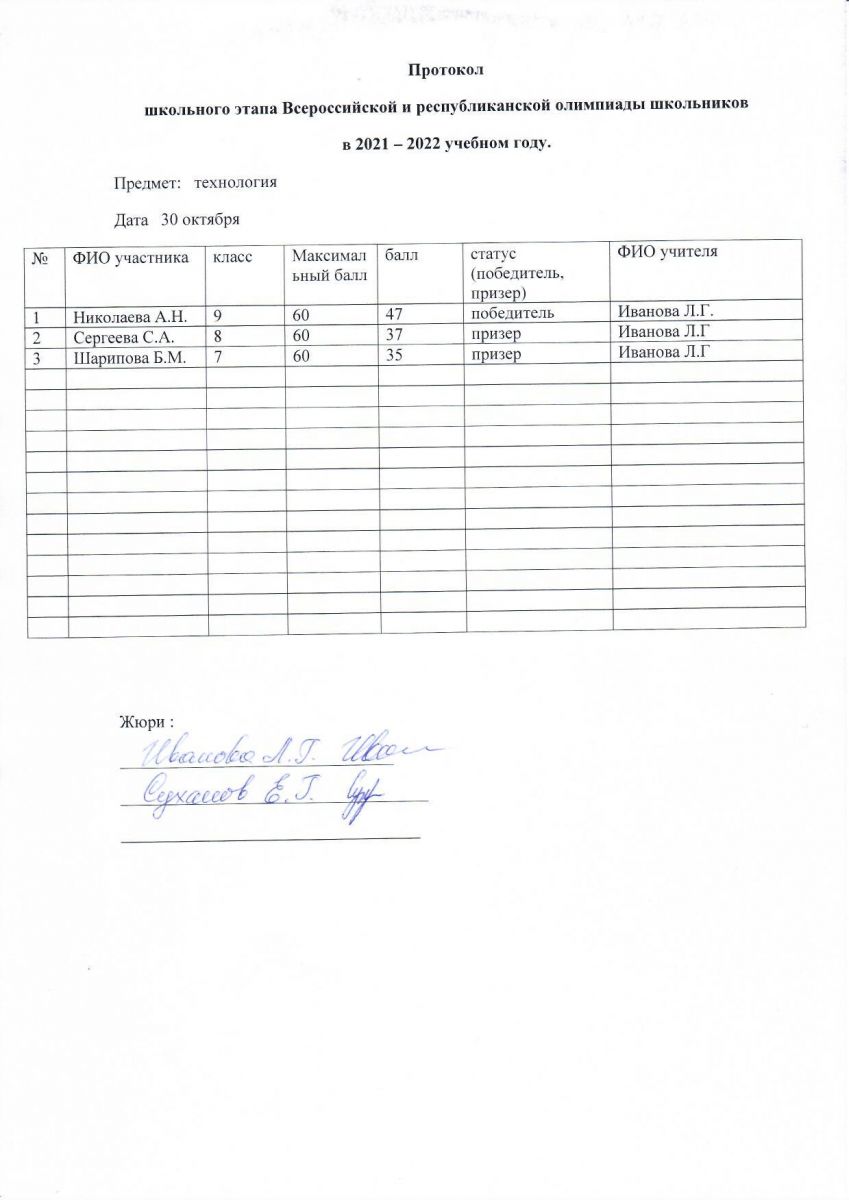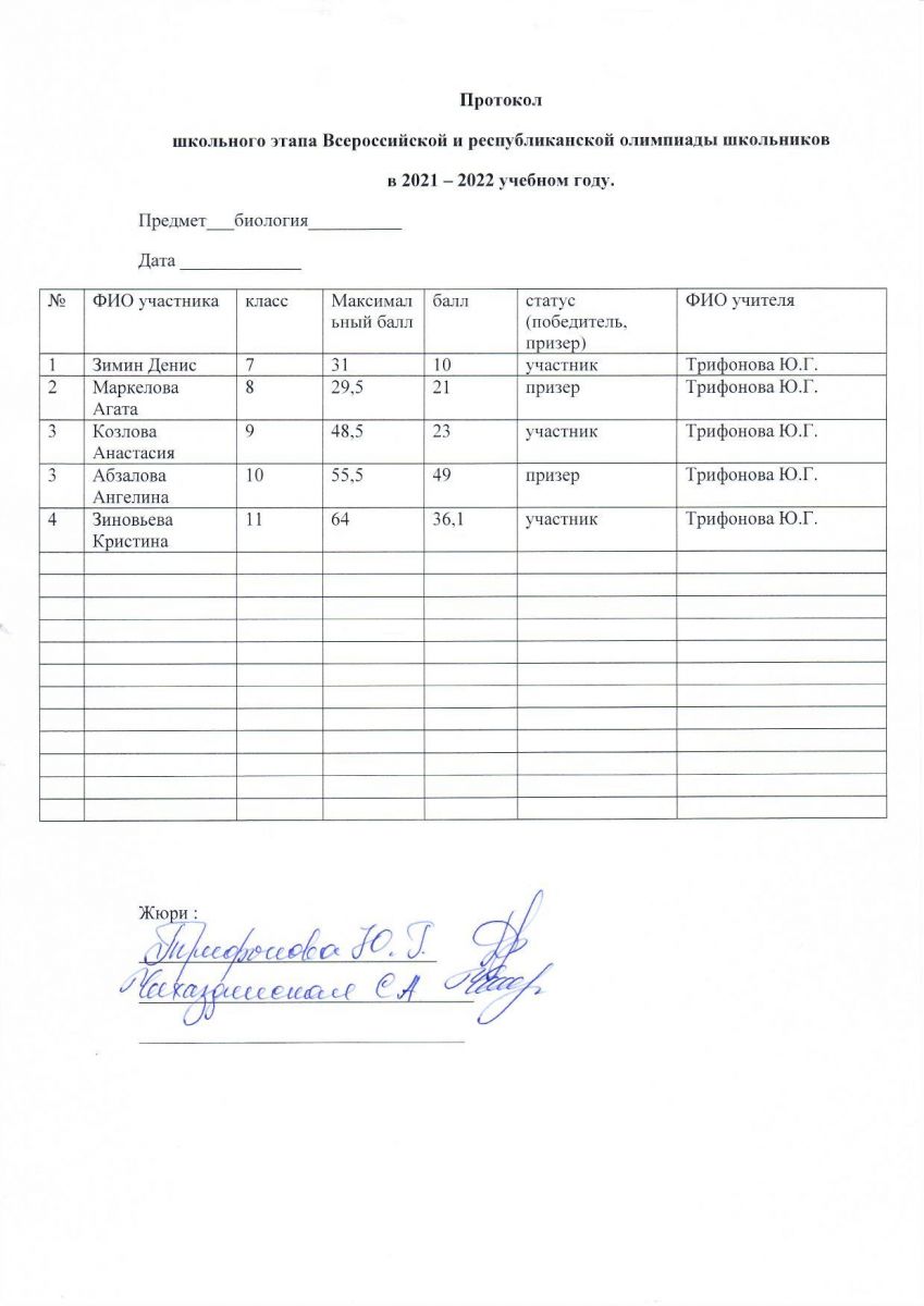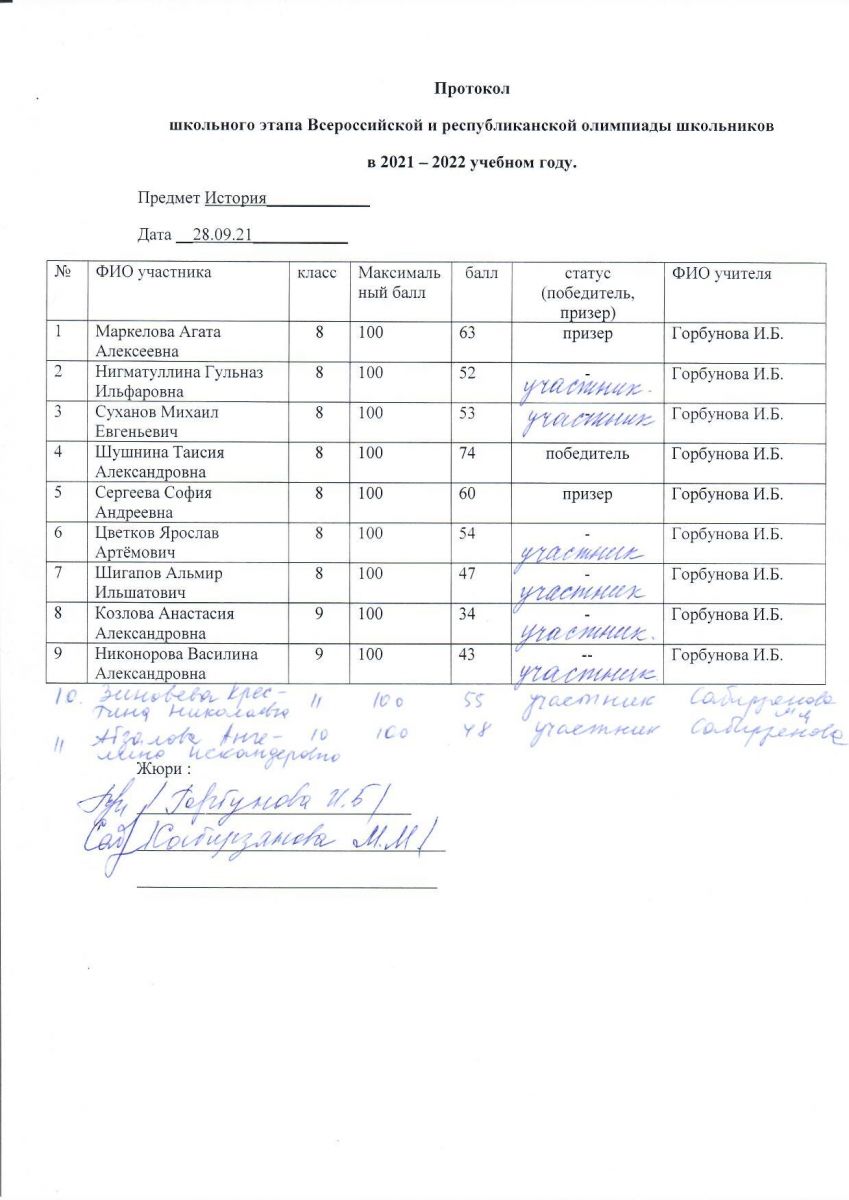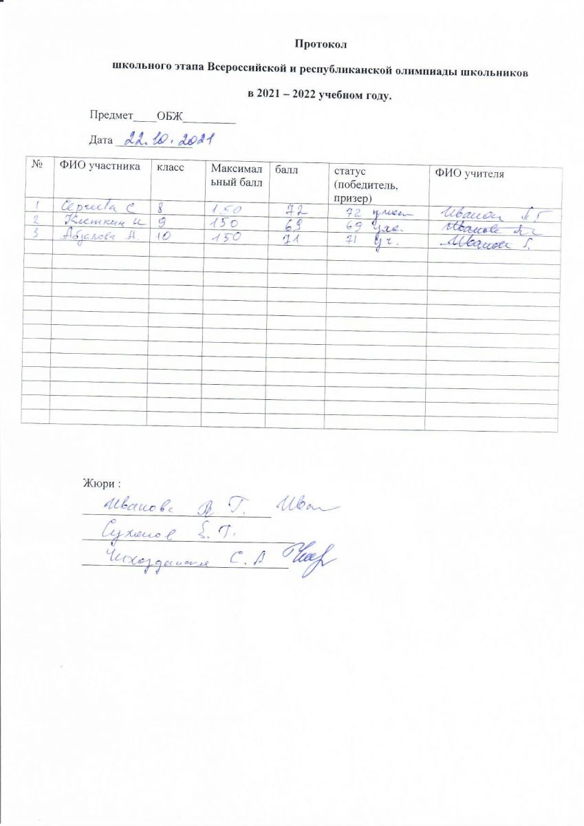 ШКОЛЬНЫЙ ЭТАП ВСЕРОССИЙСКОЙ ОЛИМПИАДЫ ШКОЛЬНИКОВ 2021 - 2022