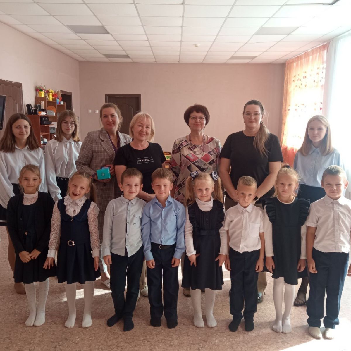 Опубликовано: 26.09.2023Сегодня в этот прекрасный сентябрьский денёк учащиеся 1 класса под шевством девочек восьмого класса сходили в родной детский садик "Солнышко", и поздравили свои воспитателейс грядущим праздником работников дошкольного образования